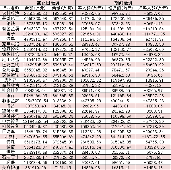 表:8月25日申萬一級(jí)行業(yè)兩融交易情況