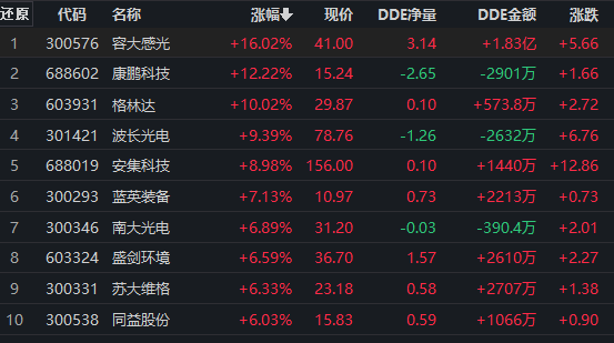 行業(yè)方面,截至8月31日上午收盤(pán),電子化學(xué)品、貴金屬、中藥、半導(dǎo)體及元件、光學(xué)光電子、小家電等行業(yè)上漲。房地產(chǎn)、教育、養(yǎng)殖業(yè)、傳媒等跌幅居前。其中房地產(chǎn)開(kāi)發(fā)行業(yè)普跌,城建發(fā)展、天健集團(tuán)、首開(kāi)股份等10只個(gè)股跌超7%。熱點(diǎn)方面,光刻膠概念開(kāi)盤(pán)后快速拉升,漲2.70%。板塊內(nèi)容大感光、康鵬科技漲超10%;格林達(dá)漲停;另有波長(zhǎng)光電、安集科技、藍(lán)英裝備等漲超7%。