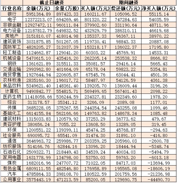 表:9月5日申萬(wàn)一級(jí)行業(yè)兩融交易情況: