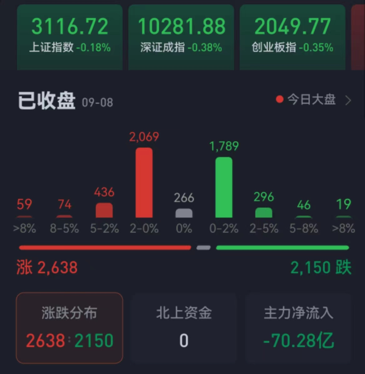 9月8日,A股三大指數(shù)繼續(xù)震蕩整理,上證指數(shù)早盤震蕩下探,午后止跌回升一度翻紅,截至收盤微跌0.18%;兩市成交額萎縮至7000億元以內(nèi)。業(yè)內(nèi)人士普遍認(rèn)為,A股市場(chǎng)在情緒恢復(fù)和業(yè)績端逐步驗(yàn)證中,有望迎來一輪估值修復(fù)的反彈。