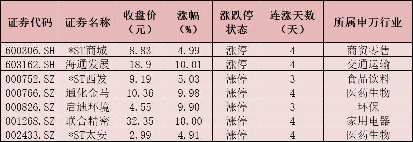 連續(xù)上漲3日且今日收盤漲停個股情況
