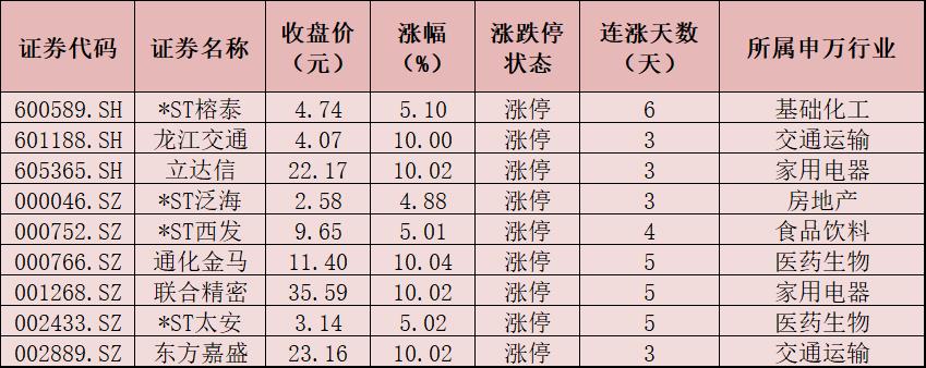 連續(xù)上漲3日且今日收盤(pán)漲停個(gè)股情況