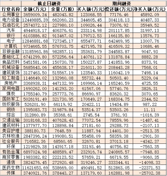 表:9月15日申萬(wàn)一級(jí)行業(yè)兩融交易情況:
