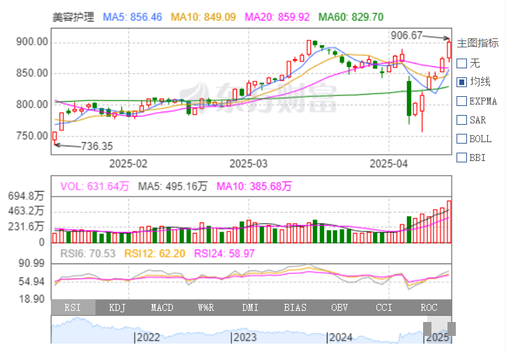 湖南大學經(jīng)濟與貿(mào)易學院副院長曹二保教授向《證券日報》記者表示:“美容護理板塊的連續(xù)上漲是政策紅利釋放、消費復蘇、技術突破及市場信心修復共同作用的結果。短期看,國產(chǎn)替代與技術升級是核心驅(qū)動因子,長期則需關注消費分層及全球化布局進展。當前,美容護理需求從年輕群體向中老年延伸,抗衰類產(chǎn)品成為新增長點,覆蓋客群擴大有望支撐整個行業(yè)長期增長。”