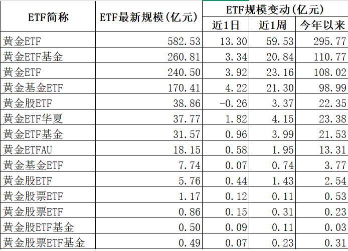 Wind最新統(tǒng)計(jì)數(shù)據(jù)顯示,截至4月18日,14只黃金ETF(交易型開放式指數(shù)基金)年內(nèi)凈流入資金超過700億元,近1日凈流入資金近28億元;同時(shí),從收益率來看,黃金ETF年內(nèi)收益率均超25%,其中最高收益率近34%。