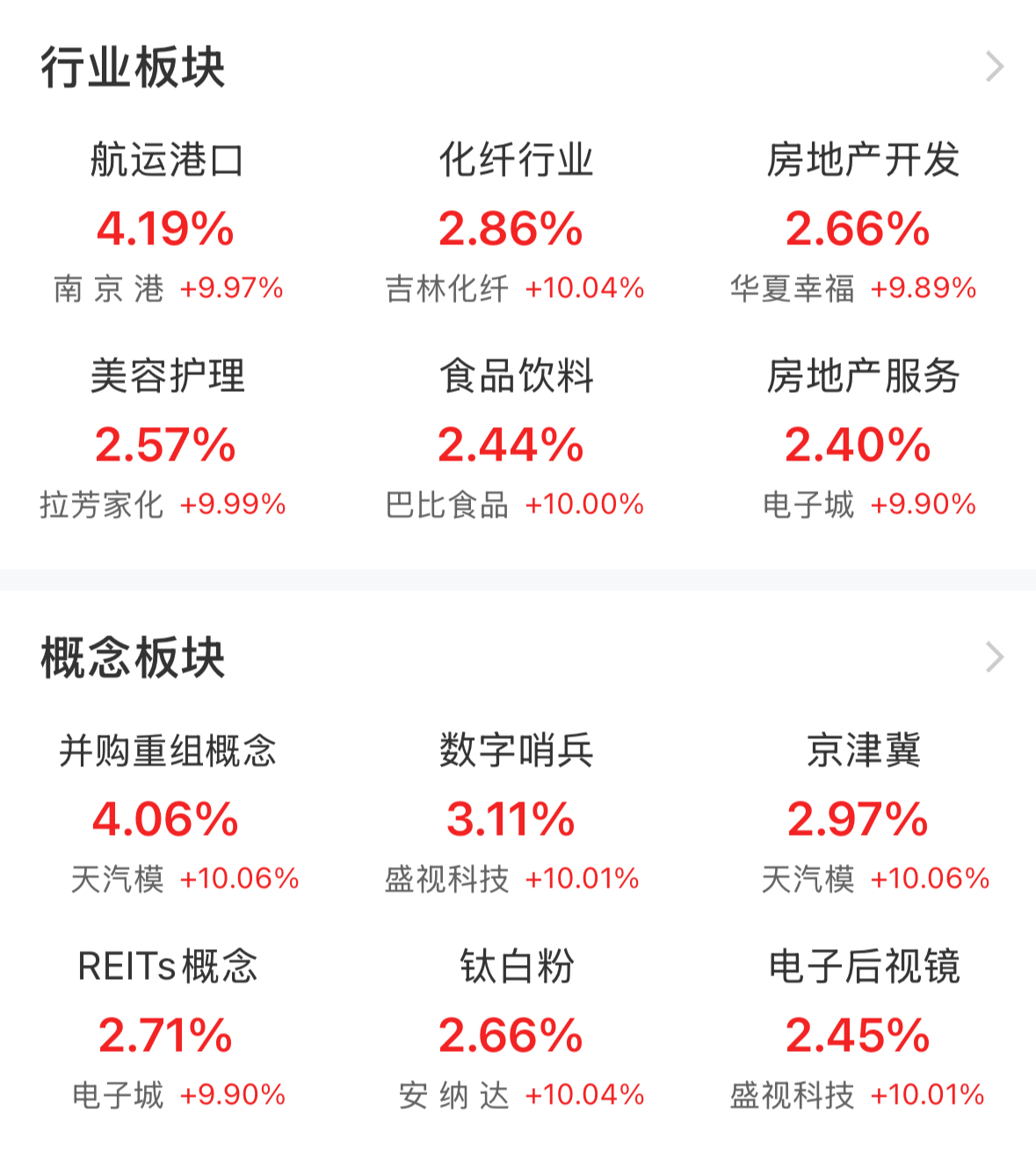 板塊行情中,航運港口、化纖行業(yè)、房地產(chǎn)相關(guān)產(chǎn)業(yè)鏈、食品飲料、美容護理等多板塊活躍。概念板塊中,并購重組概念板塊,全天強勢領(lǐng)漲,截至收盤,該概念板塊大漲4.06%。