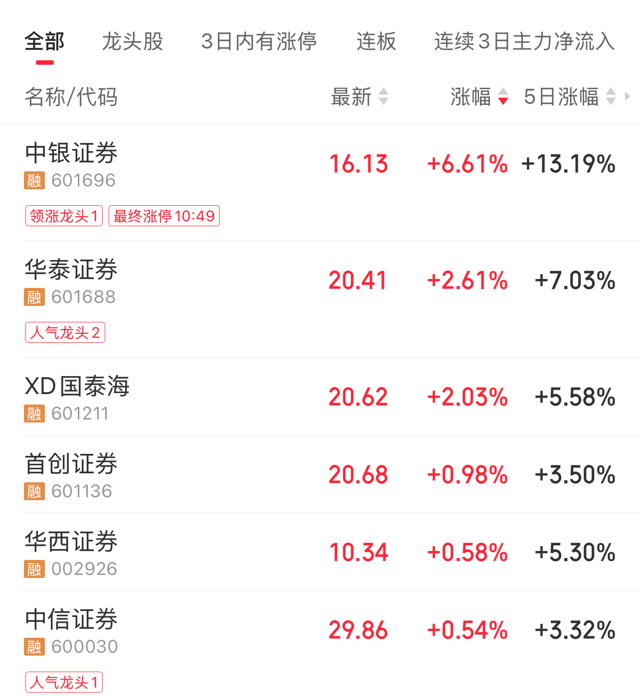 同花順數(shù)據(jù)顯示,截至午間收盤,證券板塊沖高回落,板塊成交額達440億元,板塊內(nèi)19只個股上漲。其中,領漲龍頭——中銀證券,盤中表現(xiàn)尤為搶眼,一度觸及漲停板,該股月內(nèi)累計漲幅已超過50%,成為市場焦點。華泰證券、國泰海通、首創(chuàng)證券紛紛跟漲。
