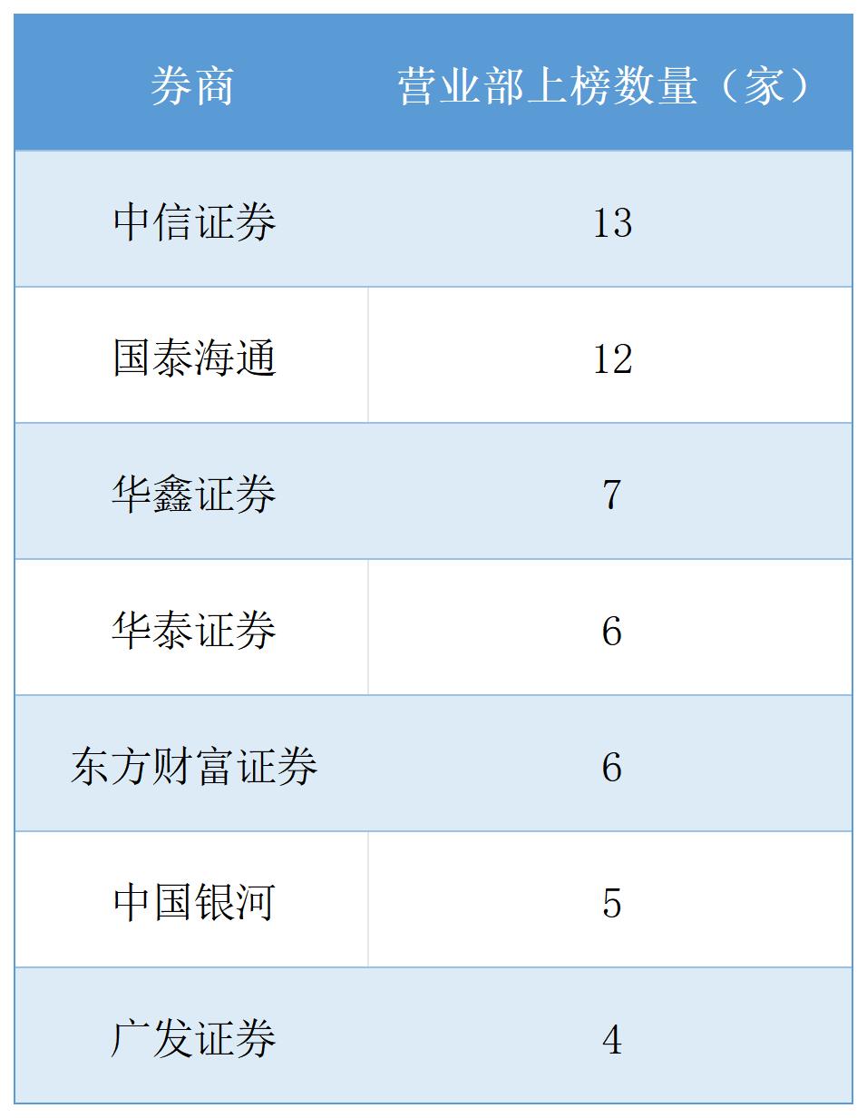 縱觀百?gòu)?qiáng)營(yíng)業(yè)部席位分布,中信證券旗下營(yíng)業(yè)部有13家上榜,數(shù)量居首;其次為國(guó)泰海通,旗下有12家營(yíng)業(yè)部上榜;華鑫證券有7家營(yíng)業(yè)部上榜,華泰證券、東方財(cái)富證券均有6家營(yíng)業(yè)部上榜。