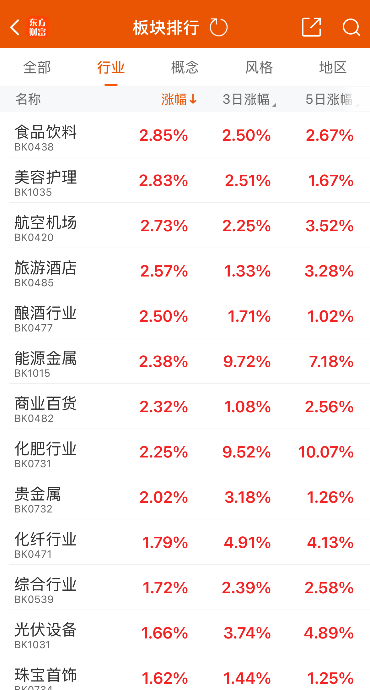 11月10日上午,A股市場消費板塊集體走高,東方財富行情軟件數(shù)據(jù)顯示,截至午間收盤,食品飲料板塊以2.85%的漲幅居前,美容護理、航空機場、旅游酒店、商業(yè)百貨等消費板塊漲幅緊隨其后。
