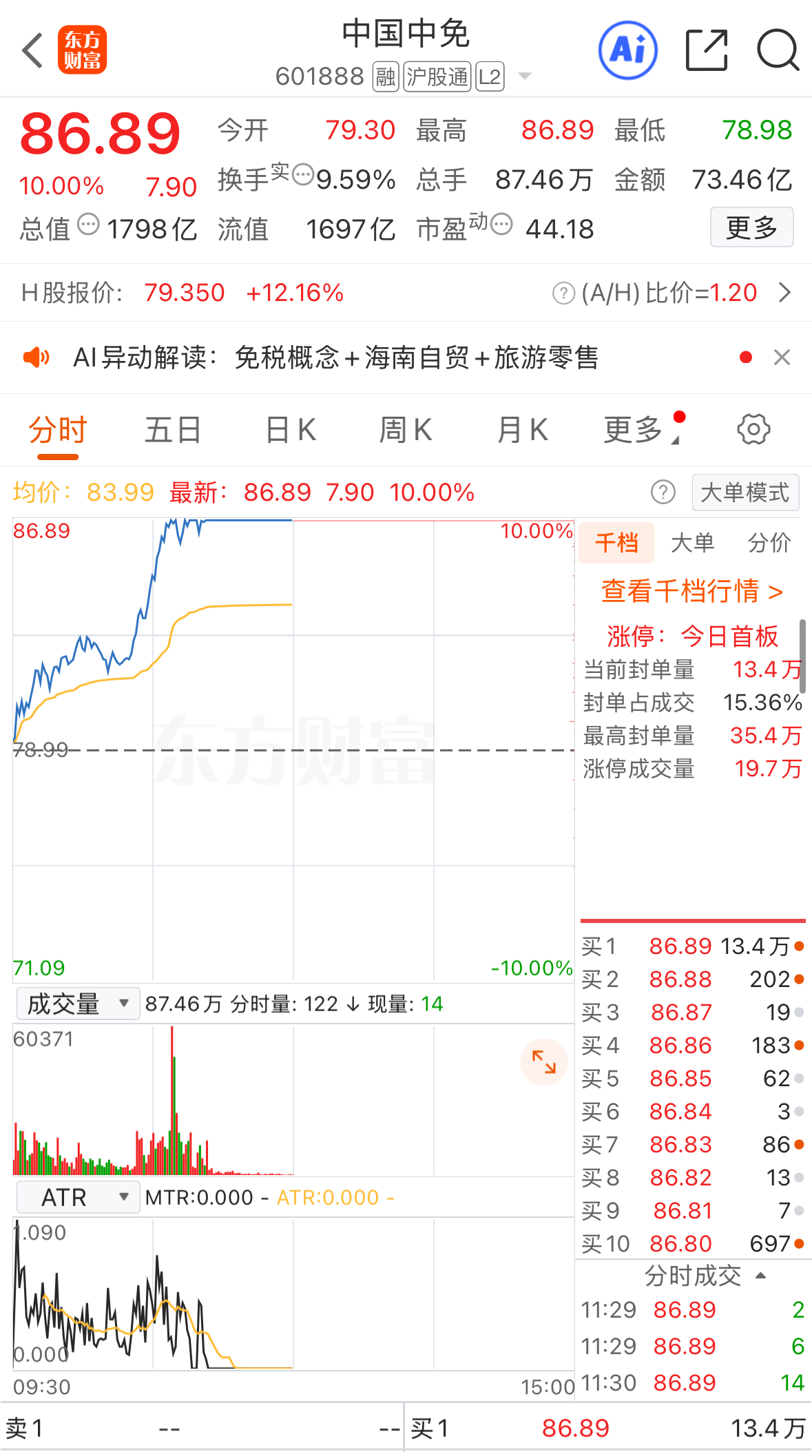 從個股來看,歡樂家“20CM”漲停,三元股份、莊園牧場、惠發(fā)食品、巴比食品、依依股份、東百集團等多只大消費個股也集體漲停。此外,千億元市值免稅龍頭中國中免漲停,截至午間收盤,該股主力凈流入資金居A股之首,獲超10億元主力資金凈流入,買一封單超13萬手。