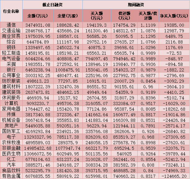 六、截至12月29日申萬(wàn)一級(jí)行業(yè)兩融交易情況