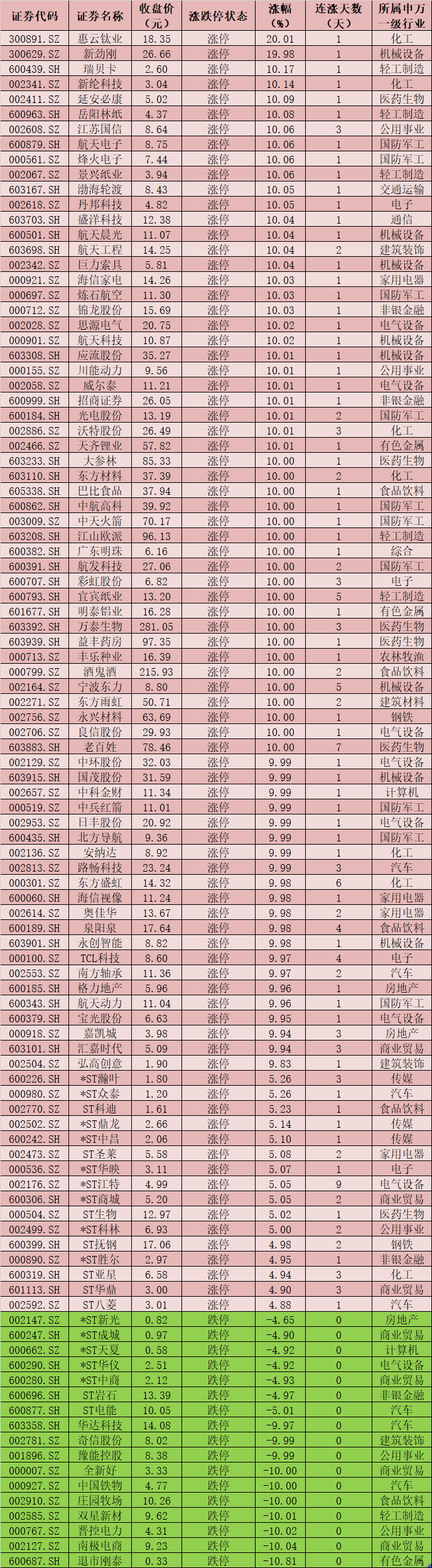 板塊方面,申萬一級28個行業(yè)中,僅傳媒行業(yè)指數(shù)微跌0.29%,其他27個申萬一級行業(yè)均實(shí)現(xiàn)不同程度的上漲,非銀金融行業(yè)指數(shù)漲幅居首,達(dá)5.82%,休閑服務(wù)行業(yè)指數(shù)漲幅也在5%以上,達(dá)到5.05%,此外,國防軍工、家用電器、機(jī)械設(shè)備等行業(yè)指數(shù)漲幅也均在3%以上。