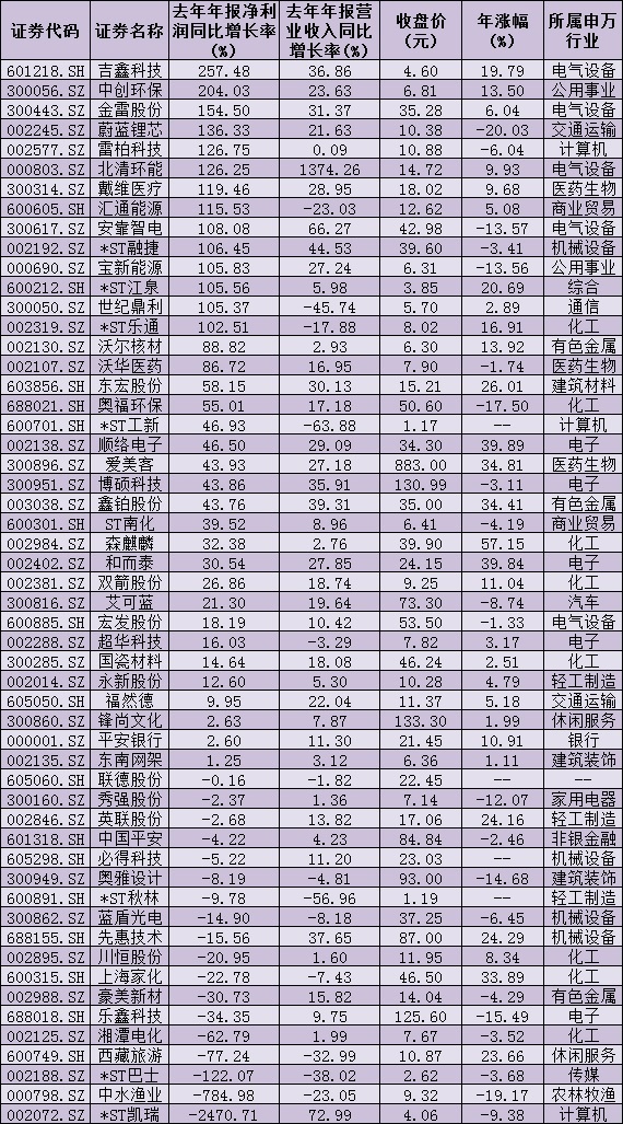 《證券日報》根據(jù)同花順統(tǒng)計發(fā)現(xiàn),截至3月1日收盤,滬深兩市已有54家公司披露了2020年年報業(yè)績。其中,36家公司歸屬母公司凈利潤實現(xiàn)同比增長,占比66.67%。其中,包括吉鑫科技、金雷股份、蔚藍鋰芯、雷柏科技、戴維醫(yī)療、安靠智電、寶新能源等在內(nèi)的14家公司,年報凈利潤同比增幅均超100%。