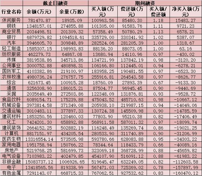 六、截至2月26日申萬級一級行業(yè)兩融交易情況