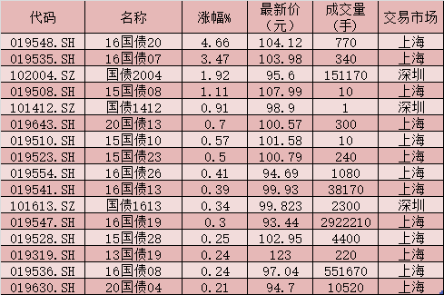 4月13日,國債市場表現(xiàn)活躍,國債指數(shù)創(chuàng)2003年12月份以來新高,該指數(shù)盤中上探至185.80點,截至今日收盤,國債指數(shù)報收185.77點,當日上漲0.06%,年內(nèi)累計漲幅達1.08%。其中,16國債20漲幅居前,達到4.66%,報收104.12元/張;16國債07漲幅也達3.47%,報收103.98元/張。