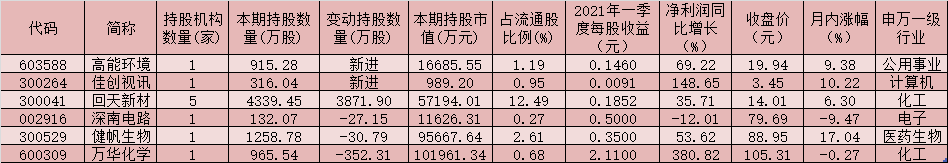 具體來看,截至今年一季度末,上述獲QFII新進(jìn)增持的個(gè)股中,QFII新進(jìn)持有高能環(huán)境、佳創(chuàng)視訊等2只個(gè)股,持股數(shù)量分別為915.28萬股、316.04萬股;QFII繼續(xù)對回天新材加倉操作,QFII增持?jǐn)?shù)量為3871.90萬股,最新持股數(shù)量為4339.45萬股。