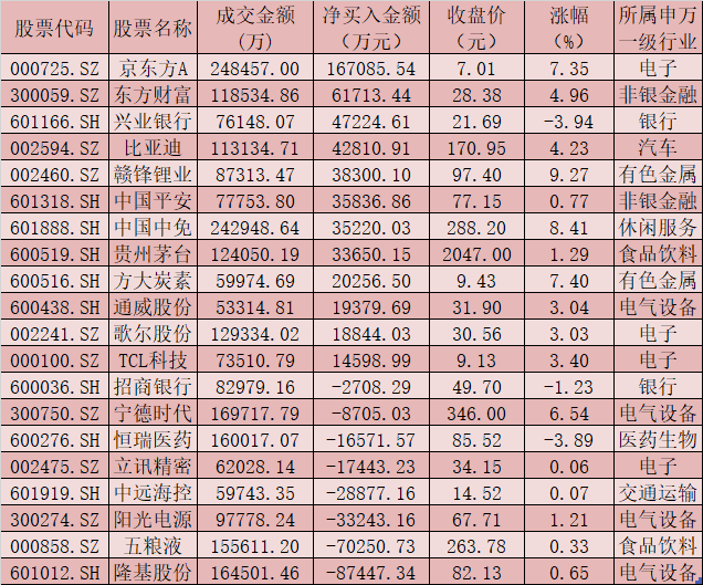 值得關注的是,周三,北向資金凈買入金額為57.31億元,連續(xù)3個交易日實現(xiàn)凈流入,其中,滬股通凈買入金額為15.41億元,深股通凈買入金額為41.9億元。