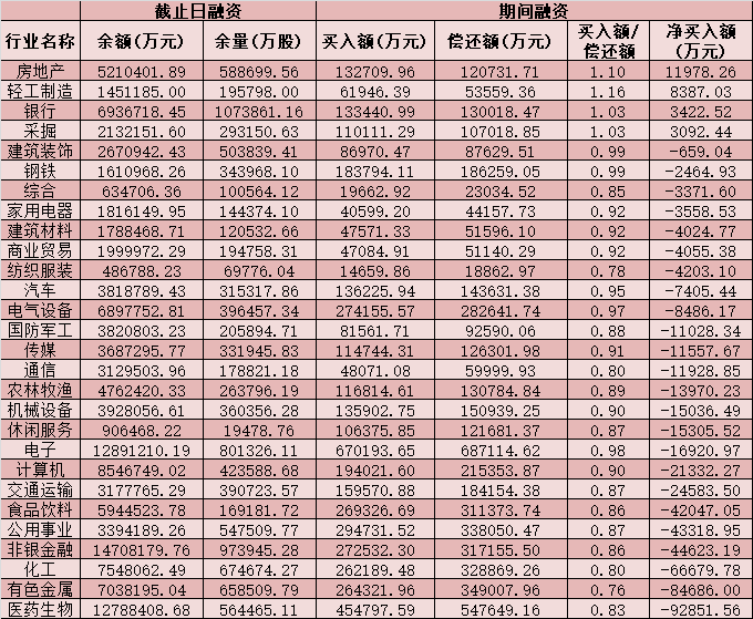 六、截至4月13日申萬級一級行業(yè)兩融交易情況