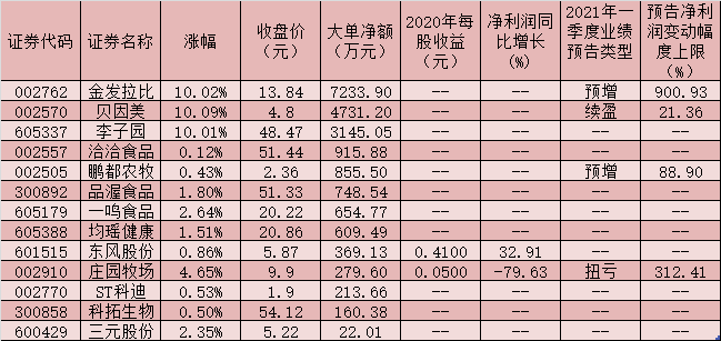 表:4月15日實現(xiàn)大單資金凈流入的乳業(yè)概念股一覽