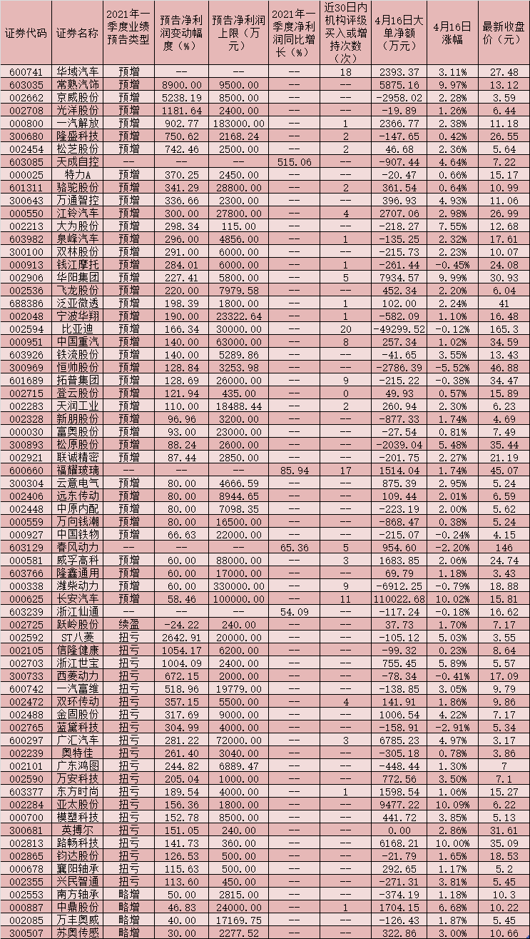 表:已披露一季報(bào)或業(yè)績預(yù)告且凈利潤實(shí)現(xiàn)或有望實(shí)現(xiàn)同比增長的汽車公司一覽