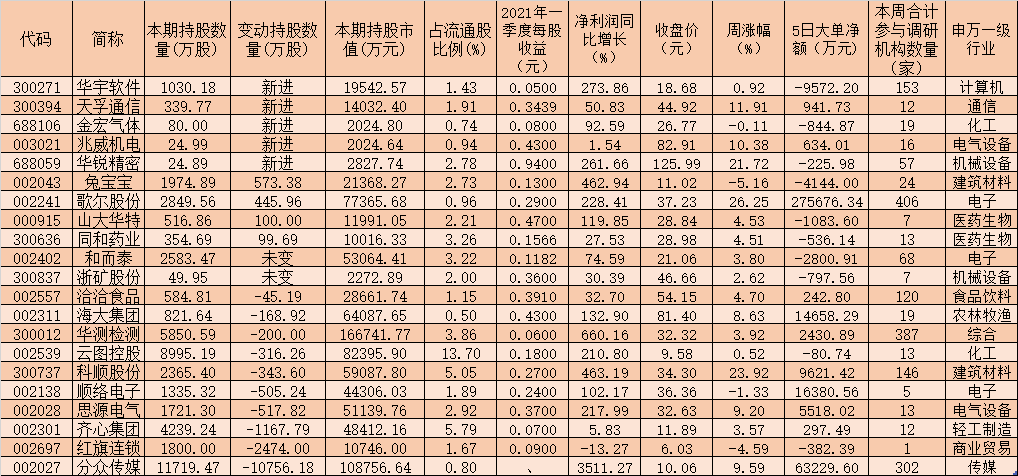 表:今年一季度獲社?;鸪謧}的機構調(diào)研股