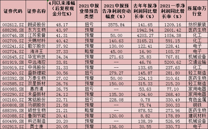 表:4月份以來(lái)累計(jì)漲幅超20%的三連增股情況: