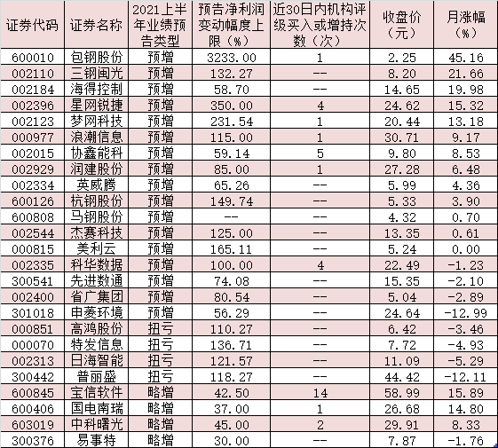 近期,機(jī)構(gòu)對(duì)部分半年報(bào)業(yè)績預(yù)喜的個(gè)股關(guān)注逐步升溫。統(tǒng)計(jì)顯示,近30日內(nèi)共有10只業(yè)績預(yù)喜股獲機(jī)構(gòu)給予“買入”或“增持”等看好評(píng)級(jí),寶信軟件近期機(jī)構(gòu)看好評(píng)級(jí)次數(shù)居首,達(dá)到14次,協(xié)鑫能科、星網(wǎng)銳捷、科華數(shù)據(jù)、中科曙光等4只概念股期間均受到2次及以上機(jī)構(gòu)扎堆推薦。