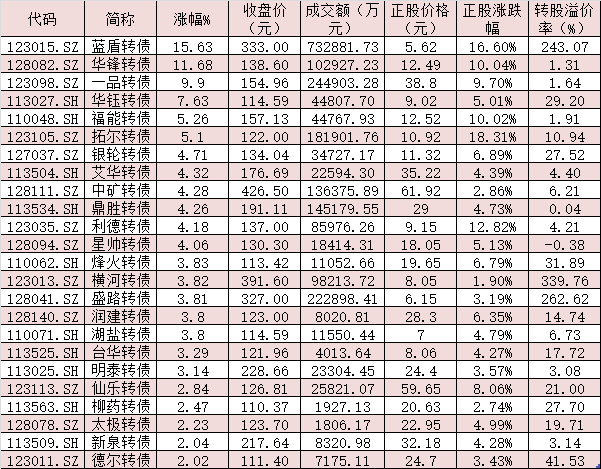 表:7月19日漲幅超2%的可轉(zhuǎn)債一覽