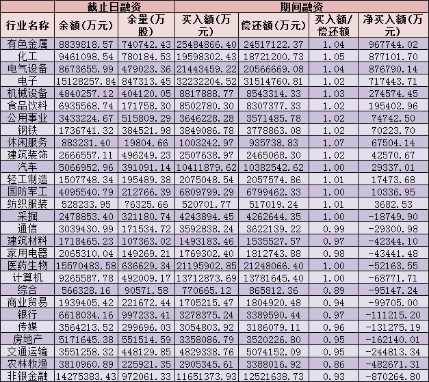 表:7月份以來(lái)申萬(wàn)一級(jí)行業(yè)兩融情況: