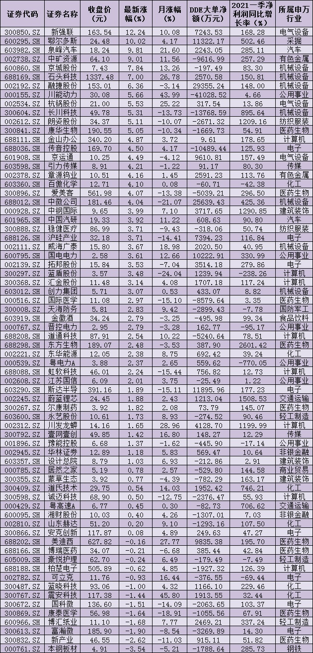 另外,從資金流向上看,上述71只個股合計資金凈流入達(dá)4.13億元。其中,40只個股呈現(xiàn)資金凈流入態(tài)勢,融捷股份、中微公司、斯達(dá)半導(dǎo)、鄂爾多斯、國電電力等個股資金凈流入均超億元,分別為2.94億元、2.56億元、1.19億元、1.13億元和1.02億元。