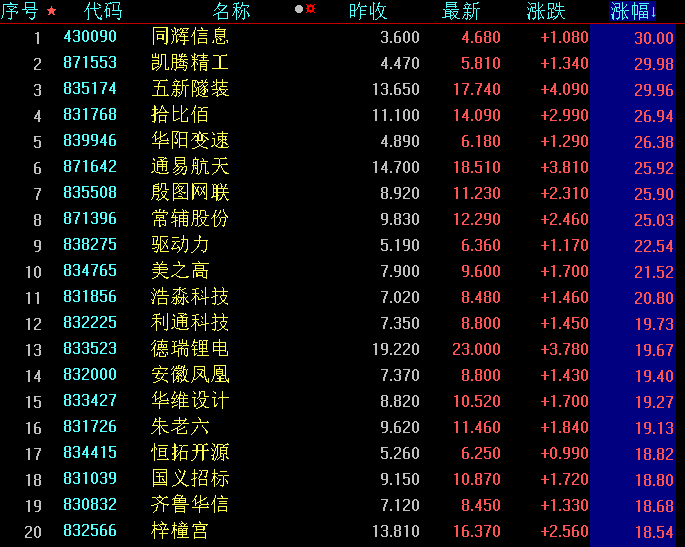 值得關(guān)注的是,新三板精選層周一盤中集體大漲,42只新三板精選層股票上漲幅度超過10%,占比逾六成。