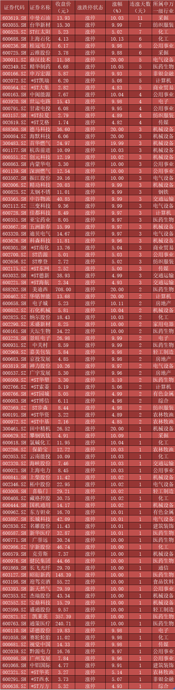 個股方面,周一,3082只個股實現(xiàn)不同程度的上漲,1216只個股出現(xiàn)下跌,其中,97只個股以漲停價報收。