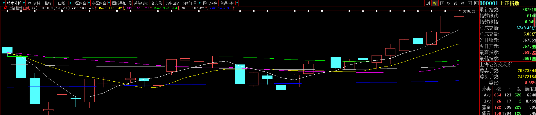 具體來看,上證指數(shù)跌0.04%,報3675.19點;深證成指跌0.1%,報14688.08點;創(chuàng)業(yè)板指跌0.97%,報3219.95點;滬深兩市合計成交額14747.84億元,兩市成交額連續(xù)第36個交易日突破1萬億元。
