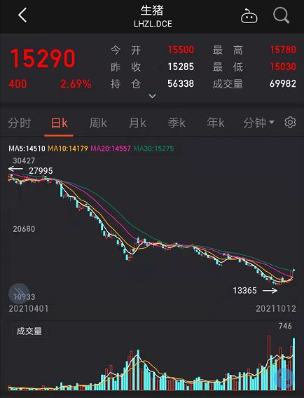 本周一,生豬期貨主力合約2201漲停,是該期貨品種上市以來(lái)首次,今日該合約也上漲了2.69%。兩個(gè)交易日內(nèi),生豬期貨主力合約已上漲7.49%,漲勢(shì)強(qiáng)勁。