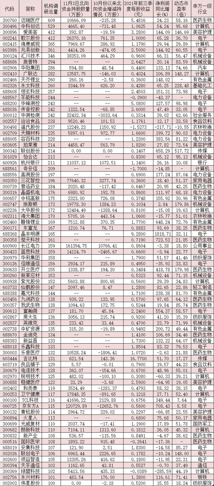 表:10月份以來(lái)獲超百家機(jī)構(gòu)密集調(diào)研股一覽