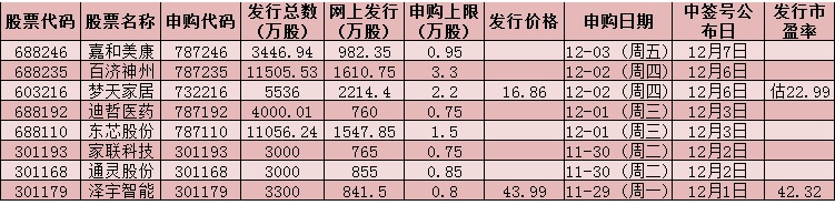 表:下周(11月29日-12月3日)8只新股申購(gòu)情況: