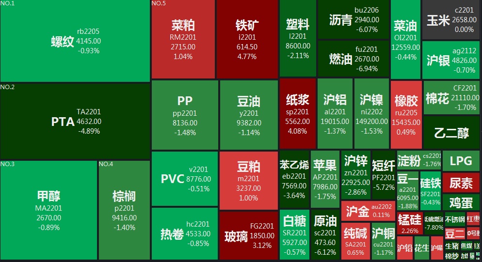 11月29日,國內(nèi)期市盤收盤多數(shù)品種收跌。鐵礦石、紙漿主力收漲超4%,玻璃、錳硅、尿素、紅棗、20號(hào)膠、菜粕、豆粕等主力漲幅在1%至3.12%不等。低硫燃油、燃油主力盤中一度跌停,分別收跌7.80%、6.94%。動(dòng)力煤、原油、瀝青、短纖、PTA、乙二醇、焦炭、生豬等主力均跌超4%。
