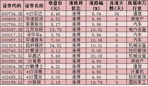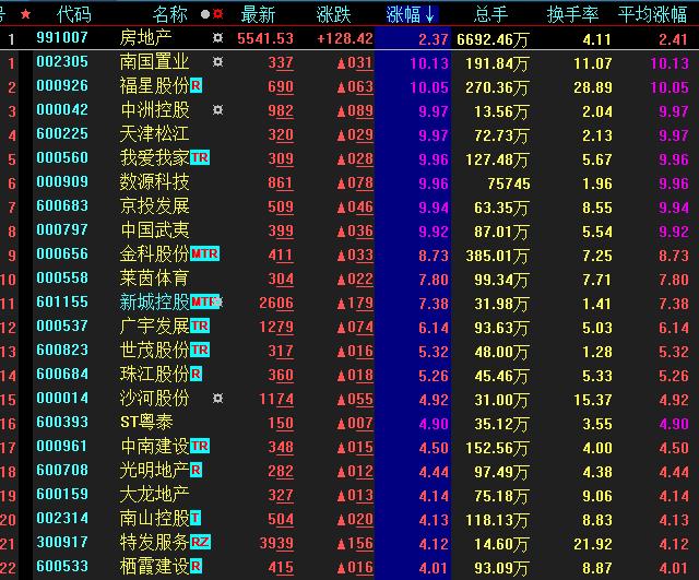 5月19日,房地產板塊漲幅居首,達2.37%。其中,南國置業(yè)、福星股份、中洲控股、天津松江、我愛我家、數(shù)源科技、京投發(fā)展、中國武夷等8只個股集體漲停。