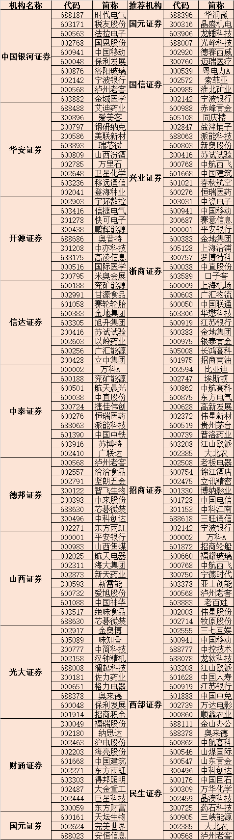 從券商推薦的個(gè)股來看,上述151只金股中,有20只個(gè)股獲2家及以上券商推薦。其中,寧波銀行、中國移動(dòng)、瀘州老窖、金地集團(tuán)等4只個(gè)股均獲3家券商聯(lián)合推薦。