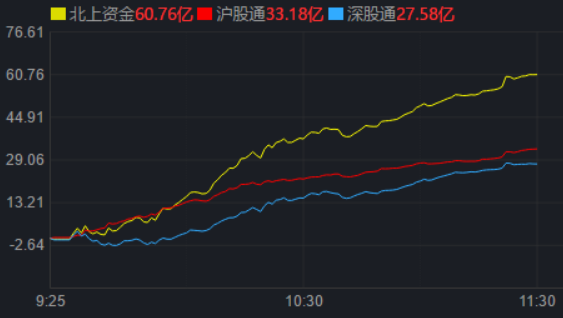 從資金面來看,3月1日上午,北上資金凈買入金額達(dá)60.76億元,其中,滬股通凈買入33.18億元,深股通凈買入27.58億元。