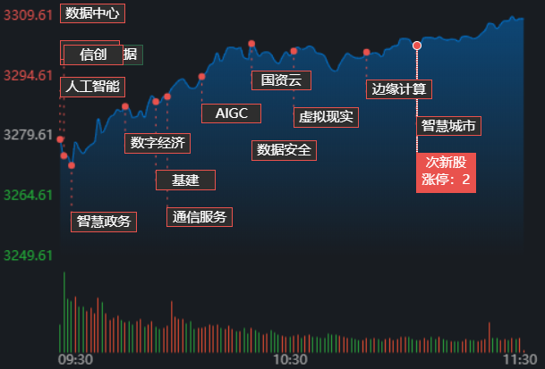 3月1日早盤,A股三大指數(shù)開盤后持續(xù)走高,滬指再次沖破3300點。截至上午11:30,上證指數(shù)漲0.90%,報3309.06點;深證成指和創(chuàng)業(yè)板指漲幅分別為1.02%和0.57%;滬深兩市成交額合計5451億元??傮w來看,A股市場個股漲多跌少,漲跌停方面,有34只個股漲停,跌停股1只。