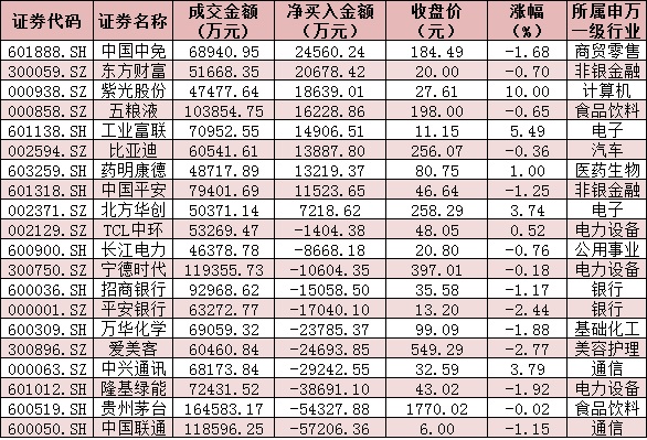 表:今日滬、深股通前十大成交活躍股交易情況:
