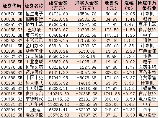 表:今日滬、深股通前十大成交活躍股交易情況: