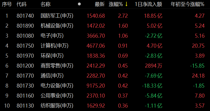 國防軍工指數(shù)逆市漲2.72%