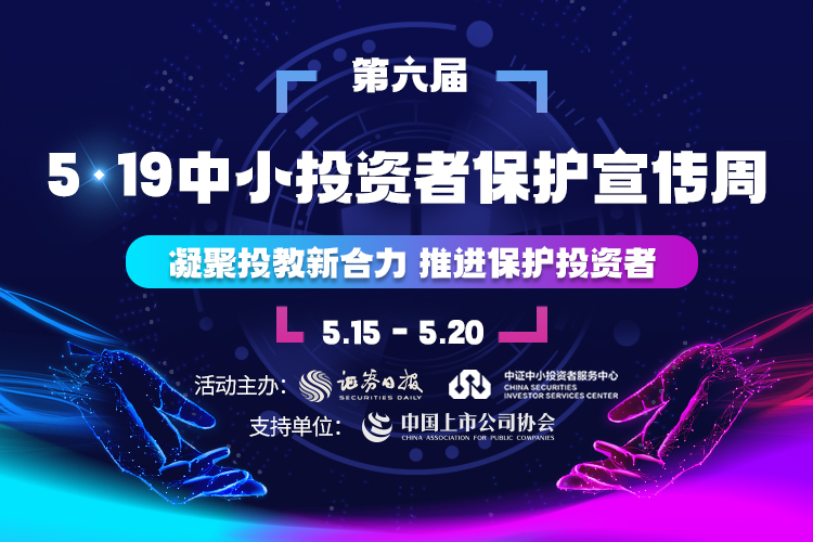為持續(xù)做好中小投資者保護(hù)工作,在連續(xù)五年成功舉辦五屆活動(dòng)基礎(chǔ)上,5月15日,由《證券日?qǐng)?bào)》社與中證中小投資者服務(wù)中心發(fā)起并主辦的第六屆"5·19中小投資者保護(hù)宣傳周"活動(dòng)將正式啟動(dòng)。今年的活動(dòng)主題是"凝聚投教新合力 推進(jìn)保護(hù)投資者",將采取"線下+線上"相結(jié)合的方式,在北京、天津和上海三地進(jìn)行,通過監(jiān)管部門、行業(yè)協(xié)會(huì)、中介機(jī)構(gòu)、上市公司等現(xiàn)身說法的形式展開...