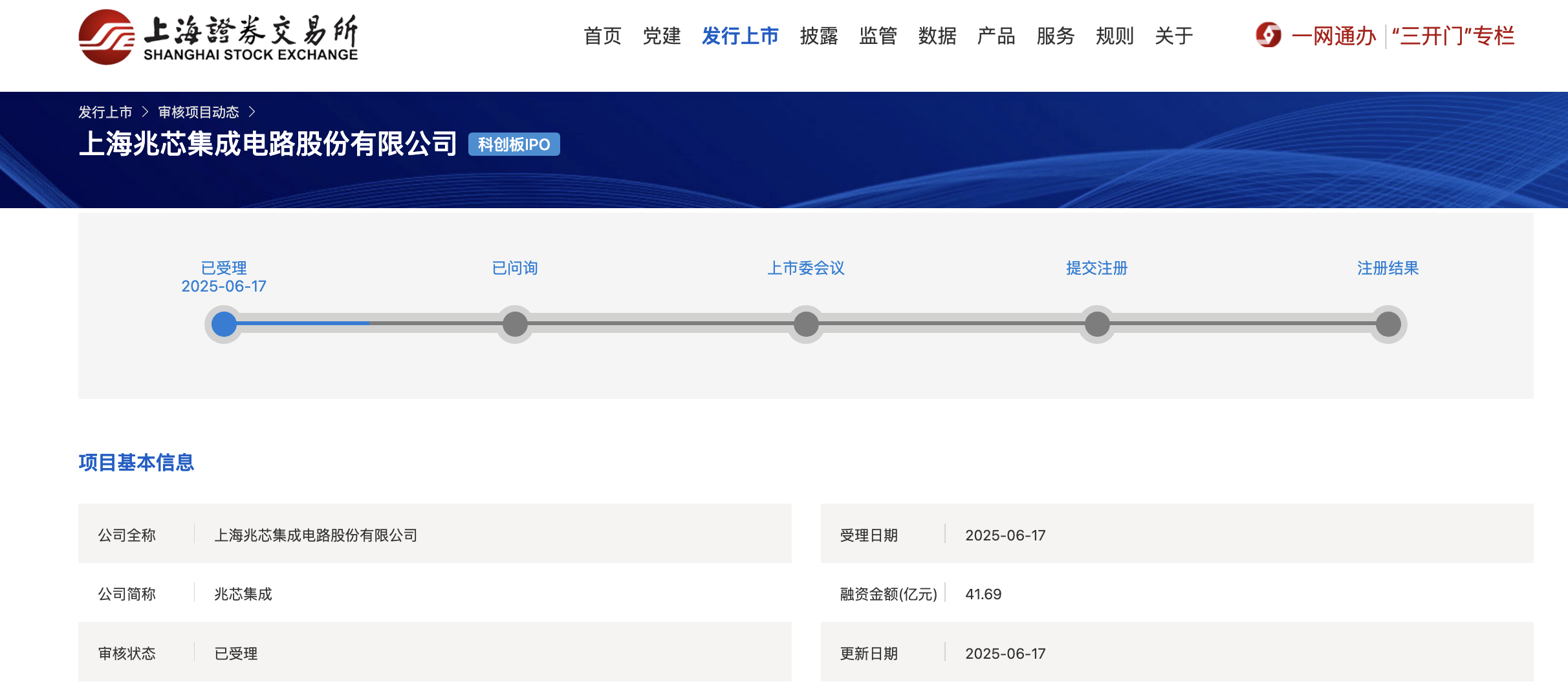 本報(bào)訊 (記者毛藝融)科創(chuàng)板新增受理一家未盈利“硬科技”企業(yè)。6月17日,上交所官網(wǎng)顯示,上海兆芯集成電路股份有限公司(以下簡(jiǎn)稱“兆芯集成”)科創(chuàng)板IPO申請(qǐng)獲受理。