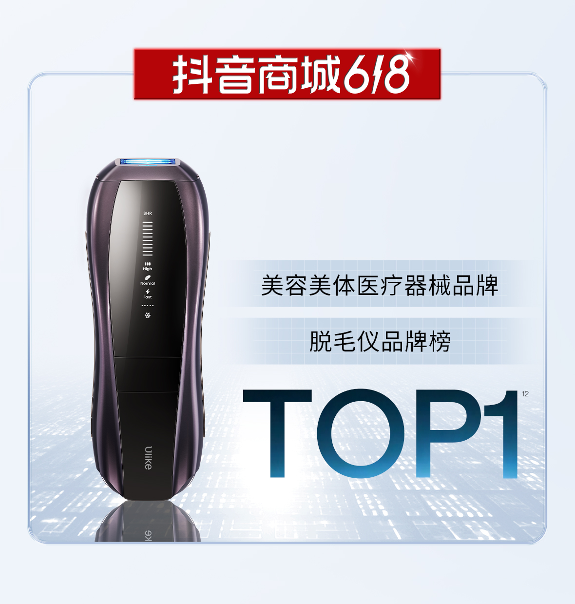 Ulike奪得抖音“美容美體醫(yī)療器械品牌”和“脫毛儀品牌”兩大榜單銷售Top1。