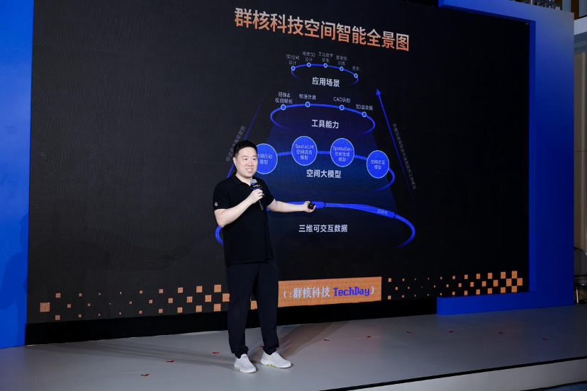 活動現(xiàn)場,黃曉煌分享了群核科技在空間智能布局上的最新思考?;诳峒覙愤@一全球最大的空間設計平臺,群核科技構(gòu)建了“空間編輯工具-空間合成數(shù)據(jù)-空間大模型”的空間智能飛輪,讓工具沉淀數(shù)據(jù),用數(shù)據(jù)加速模型訓練,用模型提升工具體驗,再在工具的廣泛應用中沉淀更為豐富的場景數(shù)據(jù)。資料顯示,截至6月30日,群核科技擁有包含超過4.41億個3D模型及超過5億個結(jié)構(gòu)化3D空間場景。