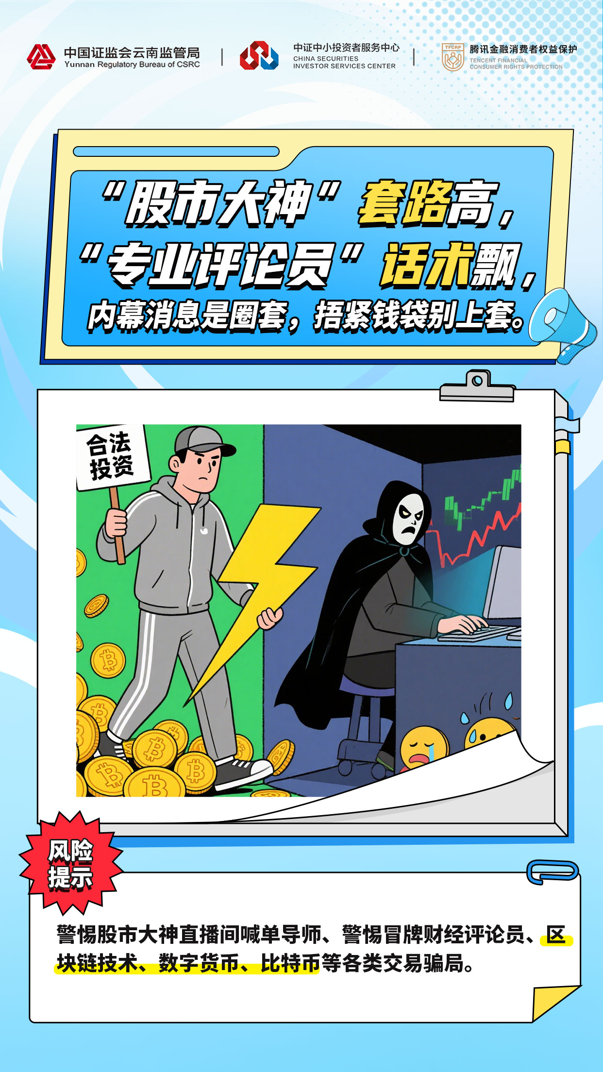 今天,云南片區(qū)提醒您:“股市大神”套路高,“專業(yè)評論員”話術(shù)飄,內(nèi)幕消息是圈套,捂緊錢袋別上套。