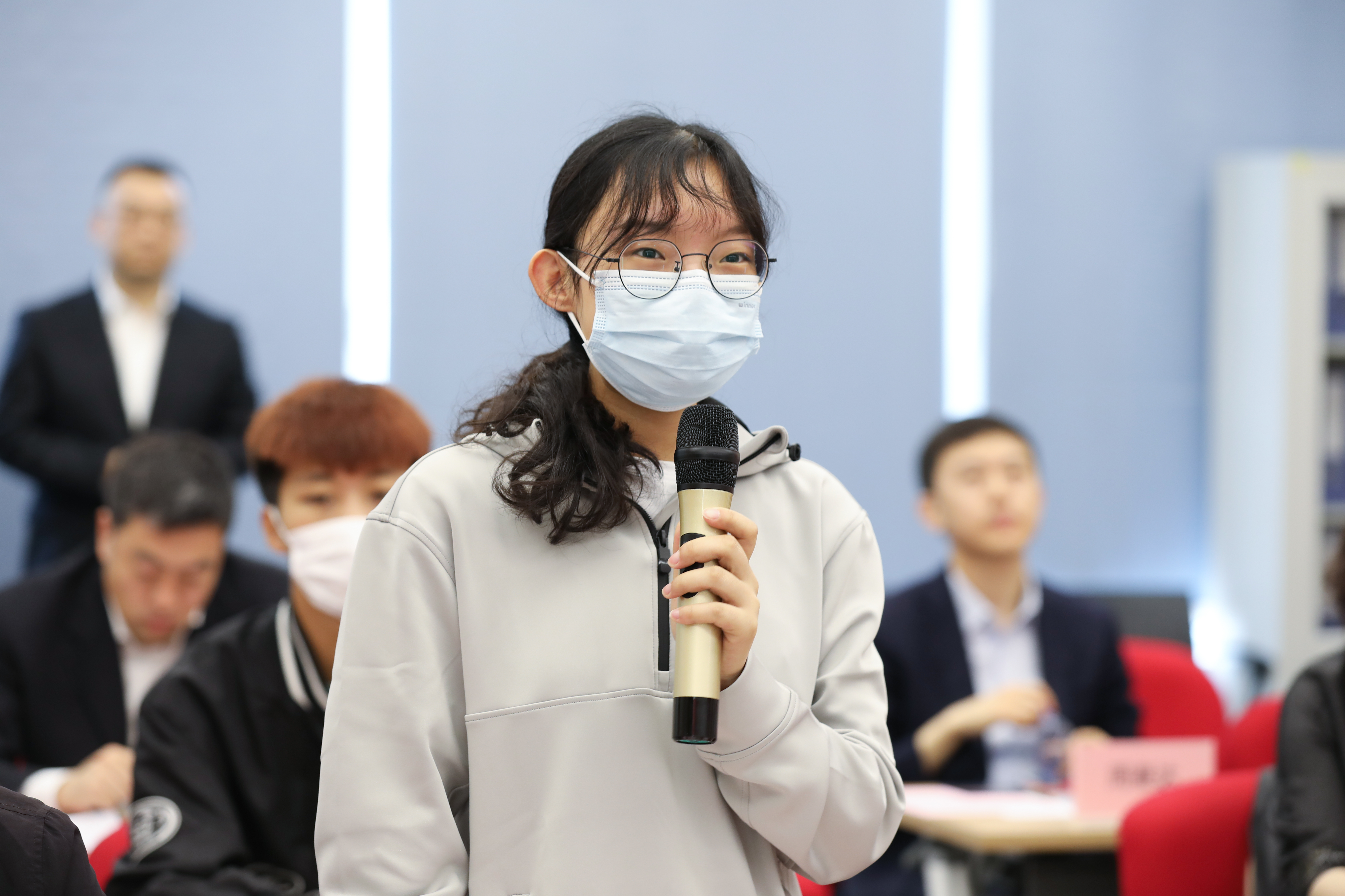 圖為大學(xué)生投資者代表提問(wèn) 攝影/王燚輝